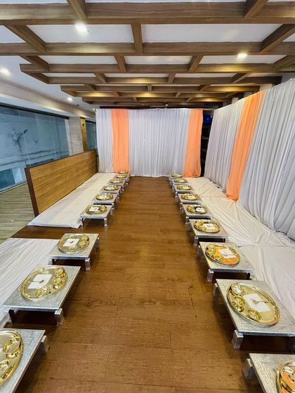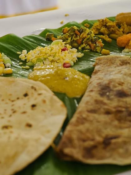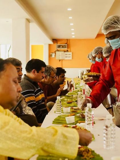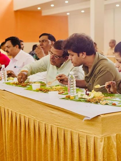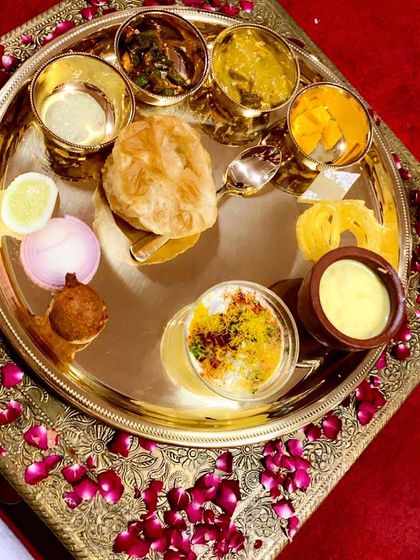 We serve sit-down traditional meals with either royal North Indian thali or Karnataka banana leaf dining, focusing on plated service and attention to detail for special occasions.