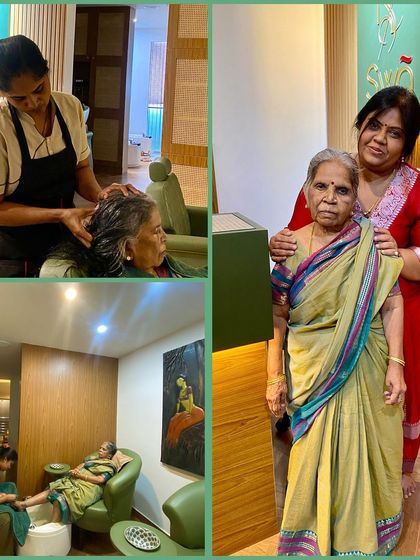 Namaste, I’m Gayathri. Swã is my dream—where ‘self’ meets Ayurveda. After living abroad, I came back to Bangalore and saw every salon loaded with chemicals. Hamare ajja-ajji (our grandparents), they used haldi, methi, kitchen stuff, and their skin had holatana (shine) you don’t see now. I wanted a women-centric space, all Ayurvedic, no shortcuts. Some days, progress is slow, but seeing women from Italy to Dubai walk in for real care—makes me proud. Swã is my way of giving back. Come, experience this bliss.