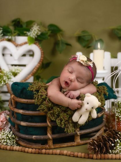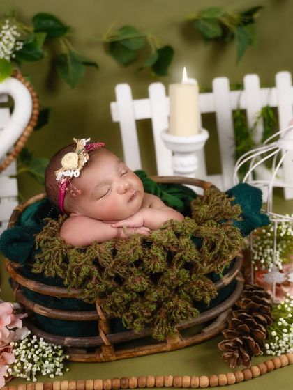 We specialize in capturing the precious first days of your newborn in our serene studio setting. Our sessions focus on peaceful sleeping poses using soft, natural lighting and gentle props like baskets, textured blankets, and themed decorations.
