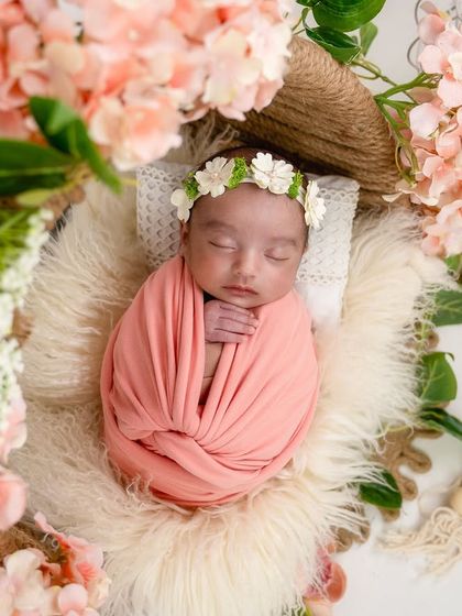 Creative Themed Setups - From rustic farm baby shoot to clouds and floral themes, I style each session for unique, magical portraits.