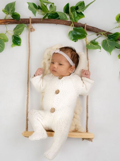 I love adding a touch of whimsy with creative props like tiny swings. These playful setups capture the sweet and imaginative side of newborn photography, showing that even the tiniest babies can have big adventures in their dreams.