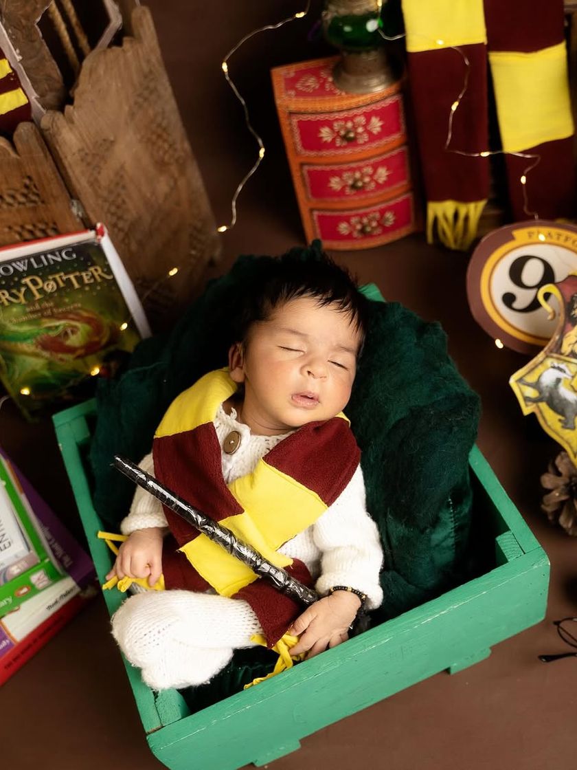 From the magical halls of Hogwarts to the divine grace of little Krishna, I create imaginative worlds for your baby. I have a wide range of props and outfits for unique themes like 'Boss Baby', a festive Santa shoot, or a creative artist concept.