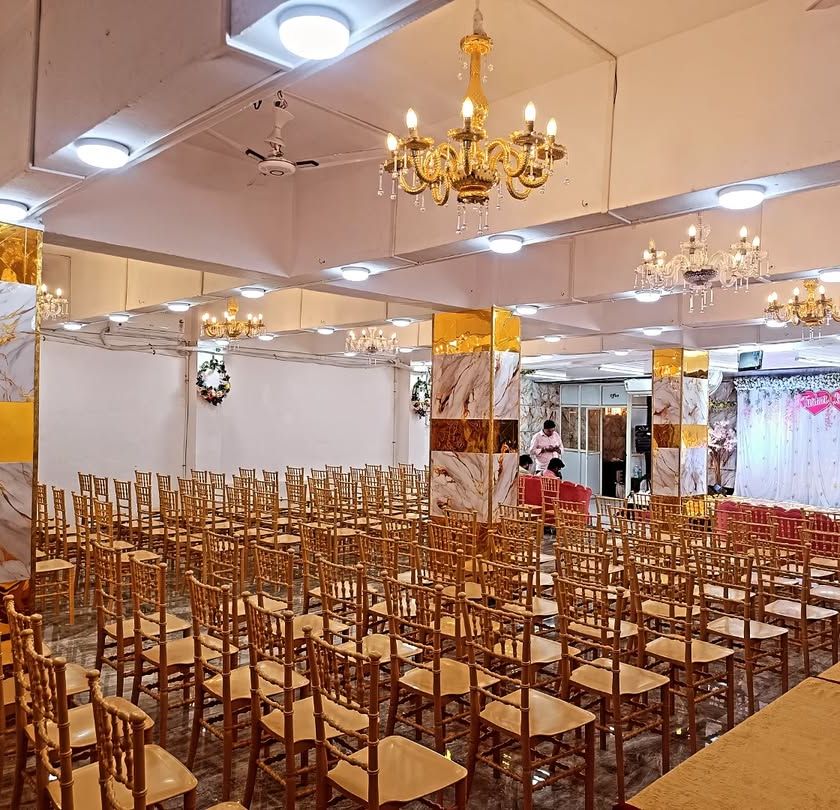 Our banquet halls in Kalyan and Badlapur are fully air-conditioned and can host from 100 to 300 guests. I provide modern facilities including sparkling marble floors, elegant chandeliers, LED dance floors, and comfortable seating with both premium Chiavari chairs and standard chairs. We also manage the catering setup for a hassle-free experience.