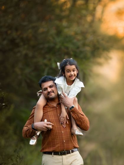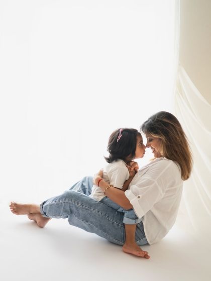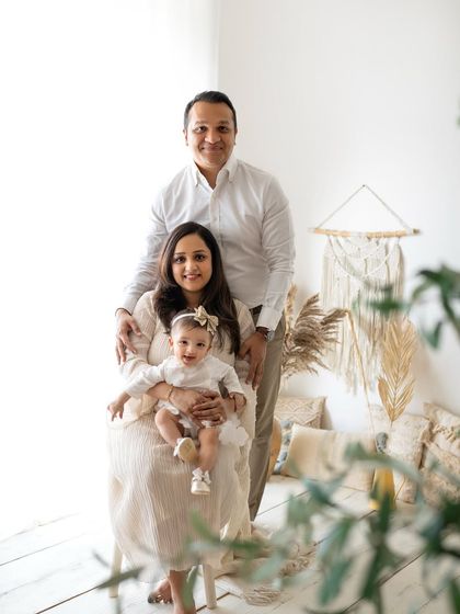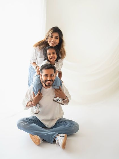 I photograph families in my Whitefield studio or outdoors in Bangalore, focusing on real, candid moments and generational portraits with a simple, natural editing style.