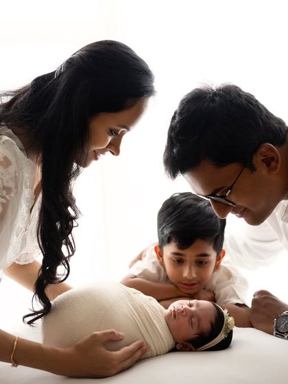 I photograph babies and kids at every stage, from giggly milestones to creative themed shoots, and always include family in the frame at my Whitefield studio or outdoors.