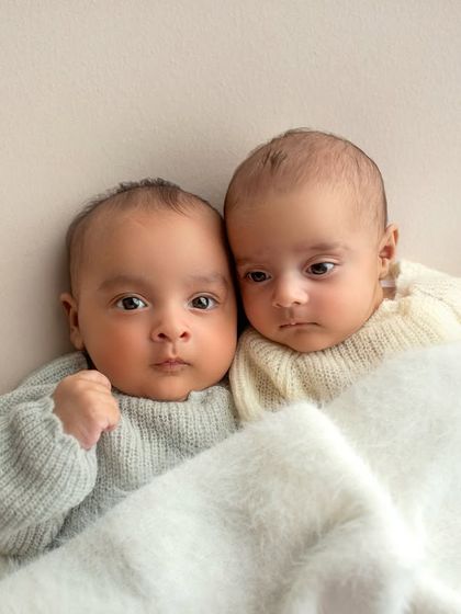 Twin Milestone Sessions - Photographing twins is tough but worth it. Double the magic, both together and solo shots.