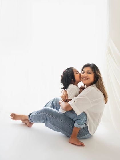 My studio in Whitefield is perfect if you like clean, classic looks or want something a little boho. Soft window light, simple backdrops - nothing too fancy, just real connection. If you’re more of the outdoor type, we can hit a park in Bangalore during golden hour for those natural light family photos. Picnics, balloons, playing around - it’s all fair game.