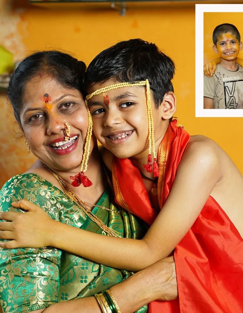 The Munj is a beautiful Maharashtrian tradition marking a boy's journey into his studies. Knowing the rituals by heart allows me to capture the key moments, from the formal rites to the playful 'bhikshaval' and the precious interactions between the child and his family.