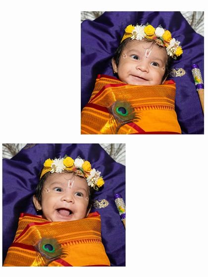 There is nothing more pure than a baby's smile. I specialize in themed baby photoshoots, like these Janmashtami sessions, creating a comfortable and playful environment to capture your little one's personality. I handle everything from the setup to making the baby feel at ease.