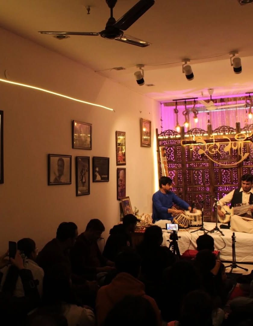 Experience Hindustani classical music in its most authentic form. Our 'baithaks' are close-knit concerts where you sit near the artists, feeling the energy and emotion of live ragas, without the distance of a formal stage. We host monthly performances featuring a variety of guest artists on vocals, sitar, sarod, tabla, and even unique instruments like the Hawaiian guitar.