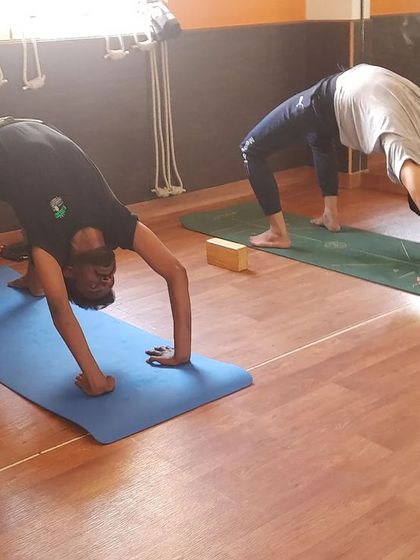 Group Yoga Classes - We teach Restorative Yoga for seniors, Core Strengthening, Partner Yoga, and kids batches in our studio.