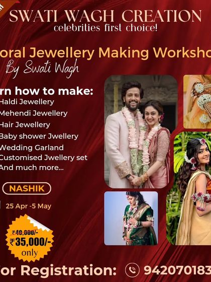 Flowers, pure magic, right? I started Swati Wagh Creation just from this joy - making every piece with my own hands, thinking about the bride or mom-to-be who’ll wear it. My little 'Gojiri' (my daughter) is my muse, and seeing her in my designs is a feeling I can’t explain. Marathi sinetarakanchi pahili pasant (first choice of Marathi celebrities) - feels unreal sometimes! Every petal tells a story, and now I even teach this art in my workshops.