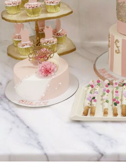 I set up custom dessert tables with cakes, cupcakes, donuts, and more, all matched to your party theme and made just for your event.