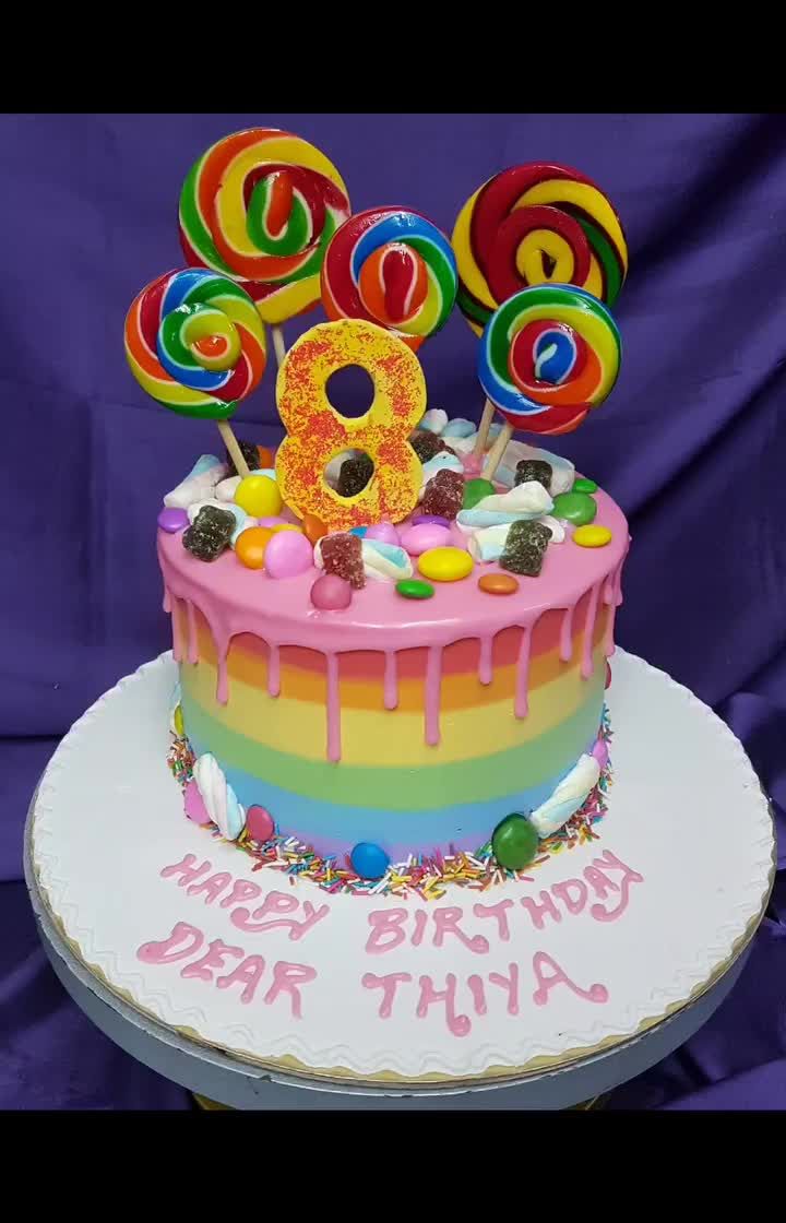 Let's get the party started with cakes that are bursting with color and fun. This collection is all about playful indulgence, featuring candy-loaded drip cakes, donut and lollipop toppers, and vibrant rainbow designs. Perfect for anyone with a sweet tooth who wants a cake that's as fun as the celebration itself.