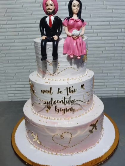 Couples seeking sophisticated, customized cakes for their special day who value attention to detail and artistic presentation.