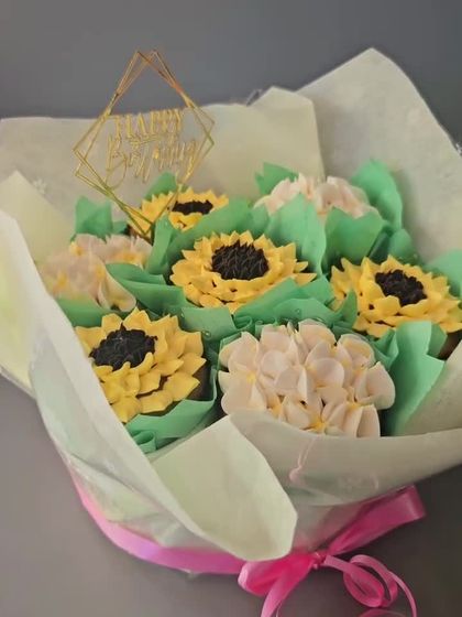 - Composition: 7 standard-sized cupcakes arranged in a circular cluster to mimic a natural flower bunch.