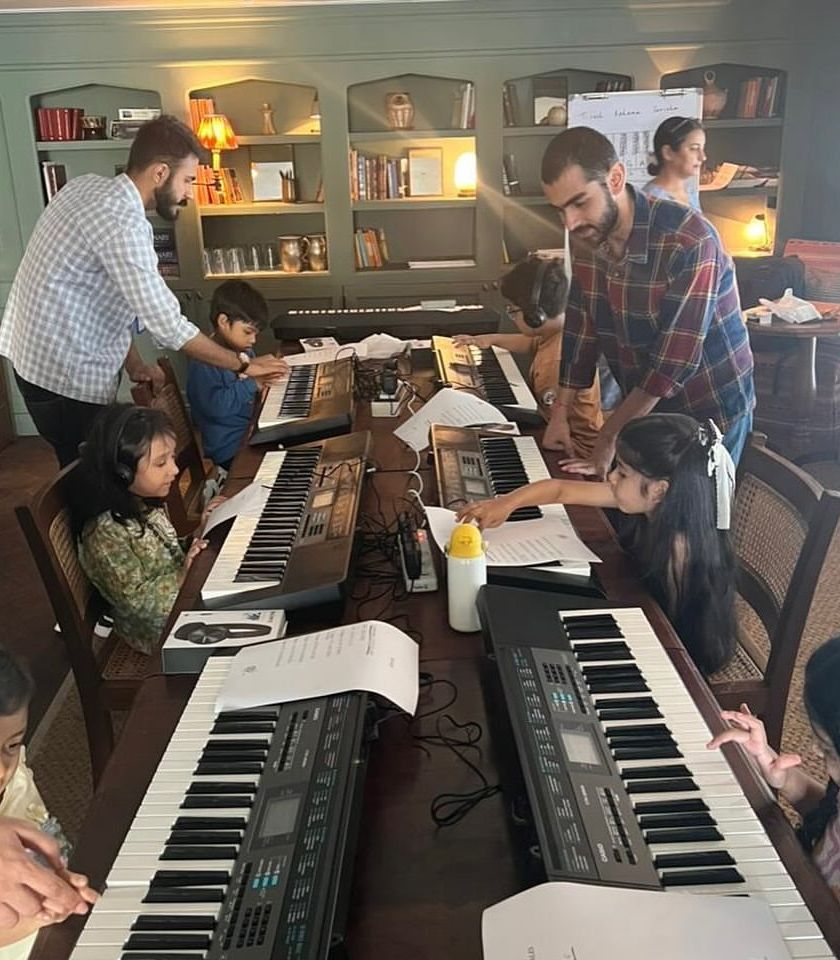 Our workshops are all about hands-on exploration in a friendly, low-pressure setting. We host them all over Mumbai, including special holiday camps during summer and monsoon breaks, where kids can try out keyboards, guitars, vocals, and more. All instruments are provided, so your child can just show up and have fun.