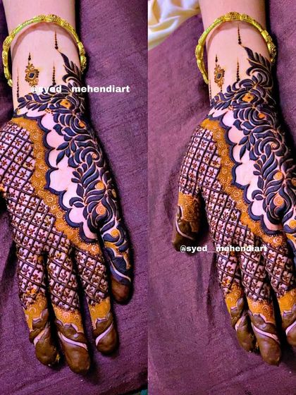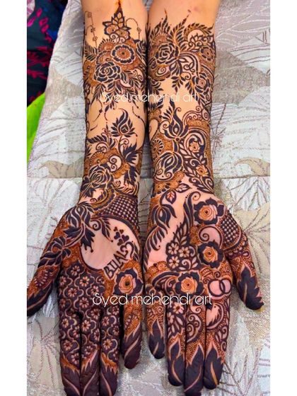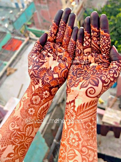 Bismillah. I'm Syed Namra, Delhi-based artist. Mehndi is my first love, especially heavy bridal henna - that dark stain, Masha Allah, makes my day. Clients say, ‘Aap bohot pyari Mehendi lagati ho!!!’ and honestly, that’s all I need. Makeup and hair? Yup, I do that too, through ‘Syed Namra Makeup, Mehendi & Beauty’. I want every bride to feel dreamy, and I’m grateful for every chance, Alhamdulillah.