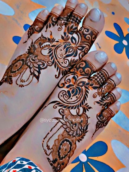 Don't forget your feet! I create beautiful and intricate mehndi designs for feet that perfectly complement your hand designs. From simple, elegant patterns to full bridal coverage, I make sure every detail is perfect.