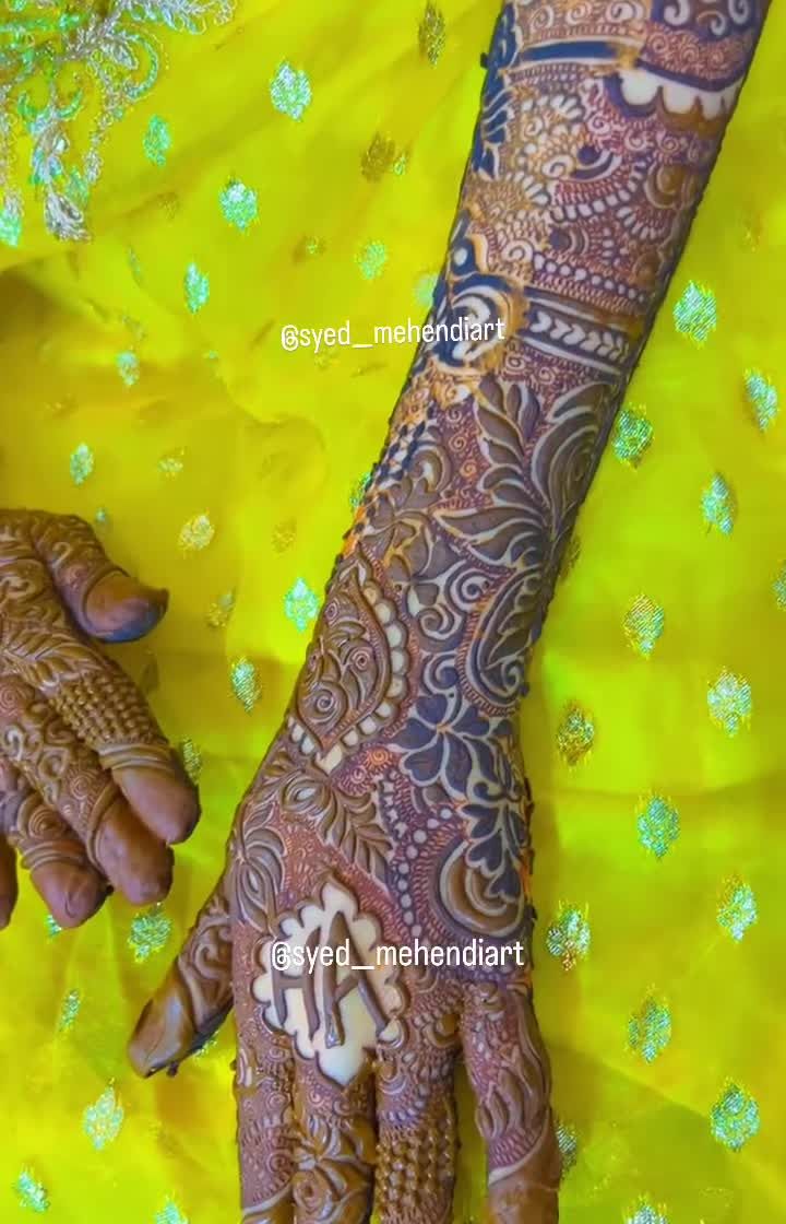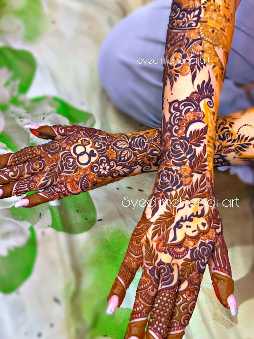 I love weaving your story into my art. This gallery shows how I incorporate names, initials, wedding dates, or special phrases like "sharik e hayat" (life partner) into the mehndi. Let's work together to add a unique touch that is meaningful to you.