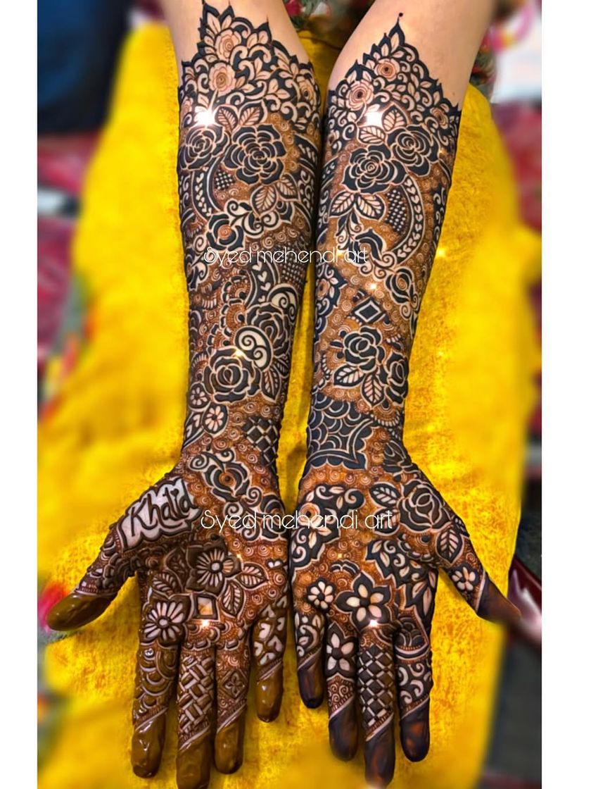 My specialty and passion lie in creating full, intricate bridal designs that are rich in detail and tradition. This collection features my work for brides who want a truly show-stopping mehndi look, often extending from the fingertips all the way up the arms.