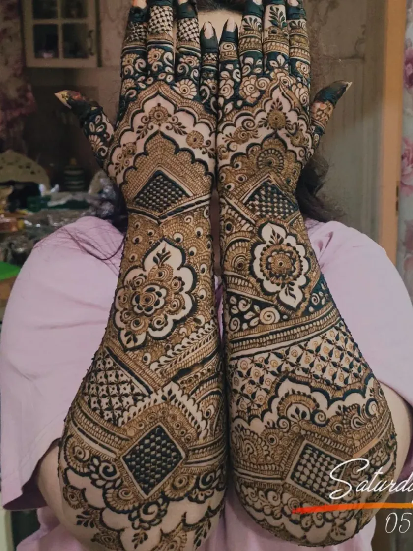 This is a handpicked selection of my absolute favorite work. It shows the variety and quality you can expect when you book me for your special event, from intricate full-hand designs to the beautiful, dark stain my natural henna leaves behind.