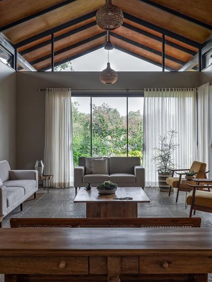 We design custom homes and weekend retreats that serve as an escape from the city, focusing on site-specific architecture that responds to the climate and local context. Our work in Alibaug, Nashik, and the Konkan region features tropical modern designs, vernacular materials like laterite stone, and a deep integration with the surrounding landscape.