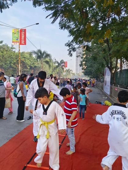 Our training extends beyond the walls of our fully-equipped dojang in Malad West. We are active in the community, participating in local events like Malad Masti to share our passion for Taekwondo with a wider audience.