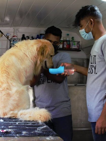 Mobile Pet Grooming Van - Our van rolls up anywhere in Bangalore. Stress-free, clean grooming for dogs and cats, right at your doorstep.