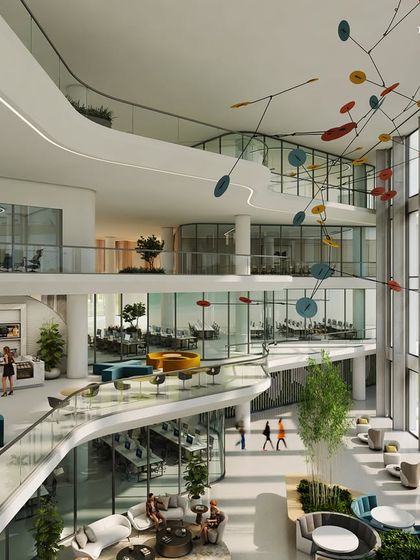 - Workspaces: Our commercial work mixes seamless curved geometry and natural elements. Offices aren’t just desks, they’re places where design helps people connect and collaborate.