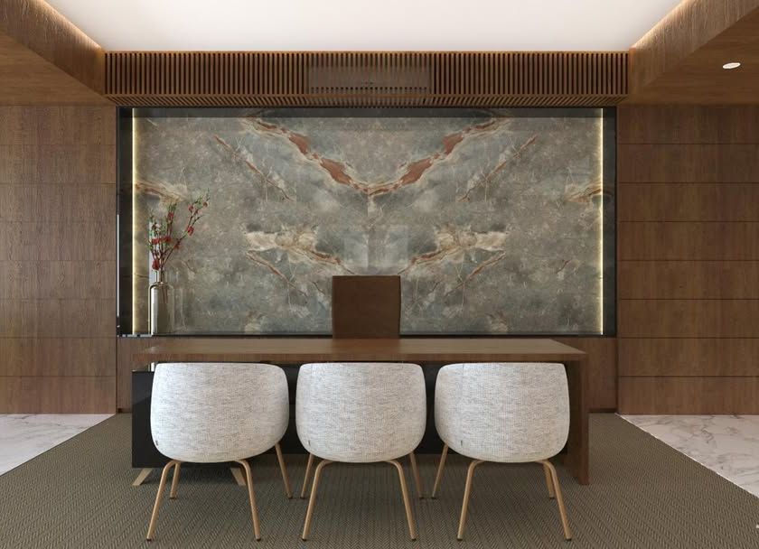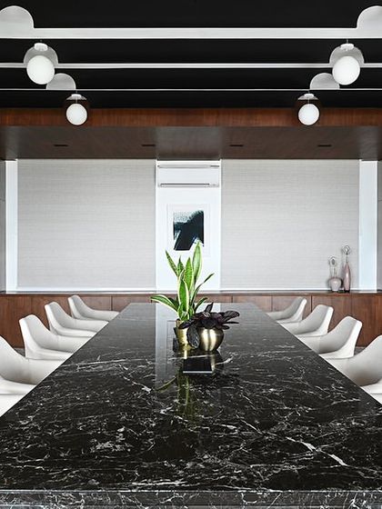 I create sophisticated and serene office environments for leaders and their teams. These spaces blend quiet luxury with high functionality, using rich materials like natural stone and wood, bespoke furniture, and curated art to create a sense of calm authority.