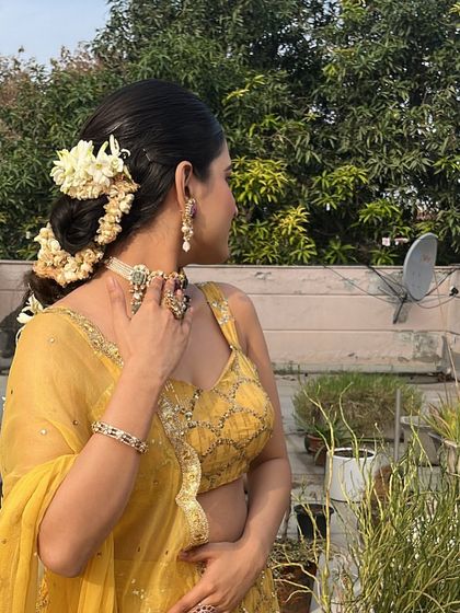 We do custom hair, makeup, and saree or lehenga draping for any party or event, with styles tailored to your vibe and group bookings available anywhere you need.