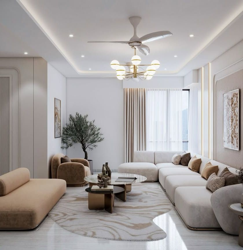 I design open and social living spaces that are the heart of the home. These rooms feature custom furniture, statement walls with materials like exotic marble or textured paint, and layouts perfect for both entertaining and quiet family moments.