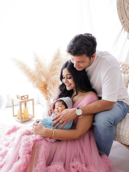Custom themes for every story - Traditional saree shoots, bohemian outdoor newborn photography, or modern looks - we’ll create what feels right for you.
