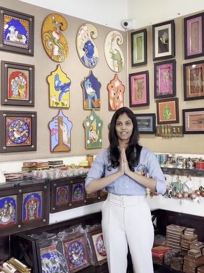 We make Tanjore paintings with real 22-karat gold foil, offer Kerala murals and glass art, and can customize any piece to your style or space.