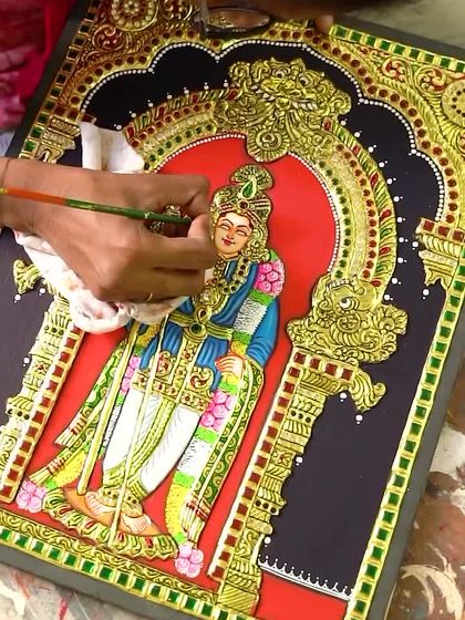 Immerse yourself in the divine world of our handcrafted paintings, specializing in the traditional Tanjore style with 22-karat gold foil. Our artists also create beautiful canvas paintings and Kerala murals, bringing deities like Balaji, Lakshmi, and Krishna to life with vibrant colors and intricate details.
