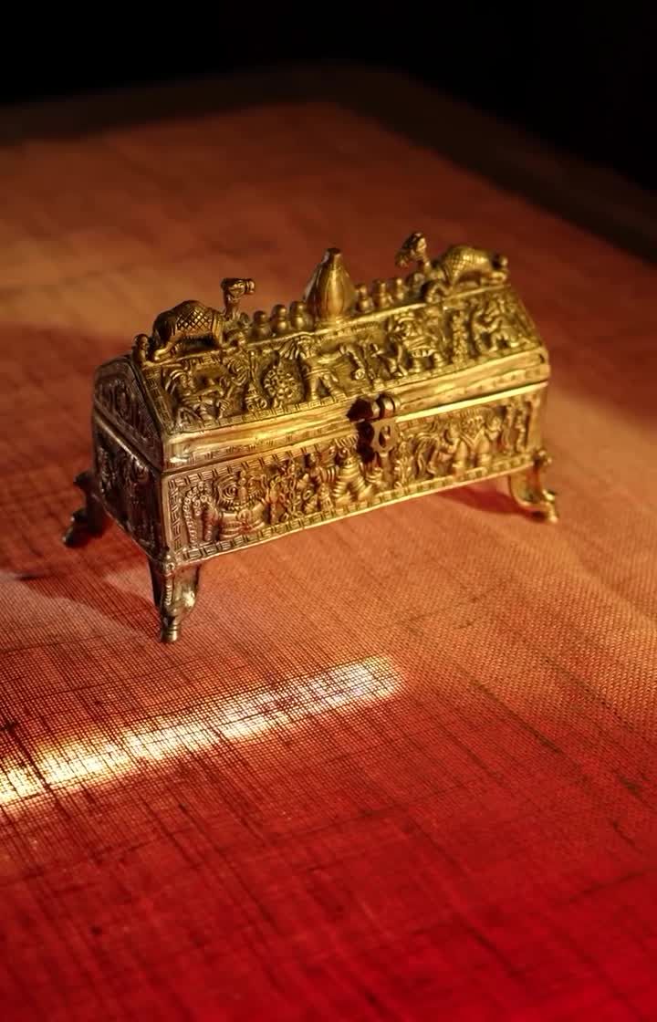 Elevate your daily rituals and home ambiance with our collection of pooja and decor essentials. Find everything from traditional brass lamps (Kuthu Vilakku) and ornate candle stands to wooden temples (Mandabham) and unique heritage items like our brass jewelry box.