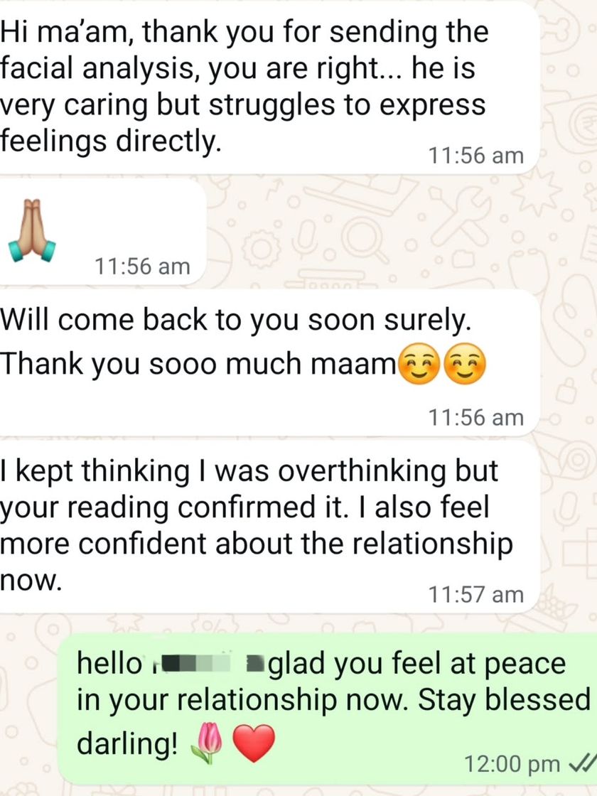 I help you understand the real dynamics in your relationships, whether for an arranged marriage, a business partnership, or family matters. By analyzing facial traits and numerology, I can reveal a person's true nature, loyalty, and how they handle commitment. Get the clarity you need before making important decisions.
