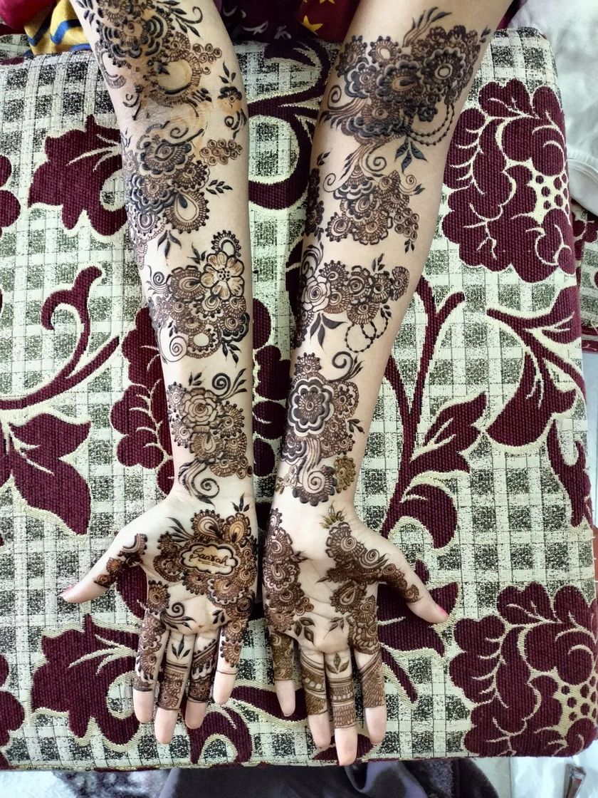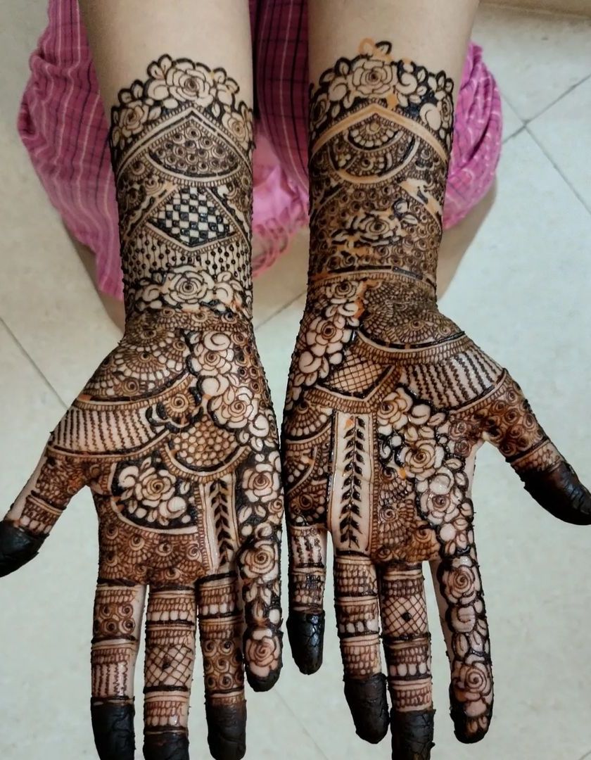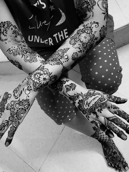 My specialty is creating full, detailed henna designs that cover the hands and extend up to the elbows. I love combining different styles, including traditional Indian motifs, florals, paisleys, and geometric jaali patterns to create a design that is uniquely yours.