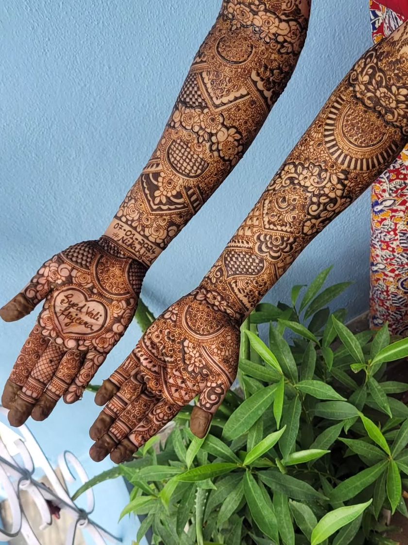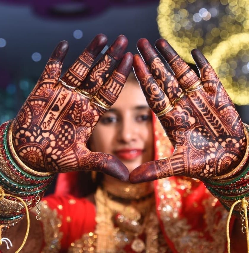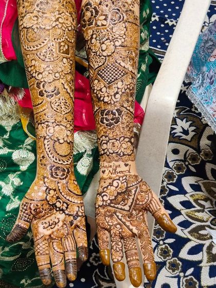 Let's make your henna truly special by weaving in personal details that tell your love story. I love hiding the groom's name, initials, wedding dates, or meaningful symbols like hearts and rings within the intricate patterns of your design.