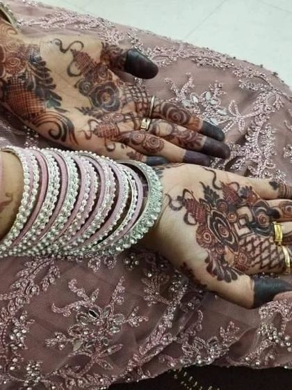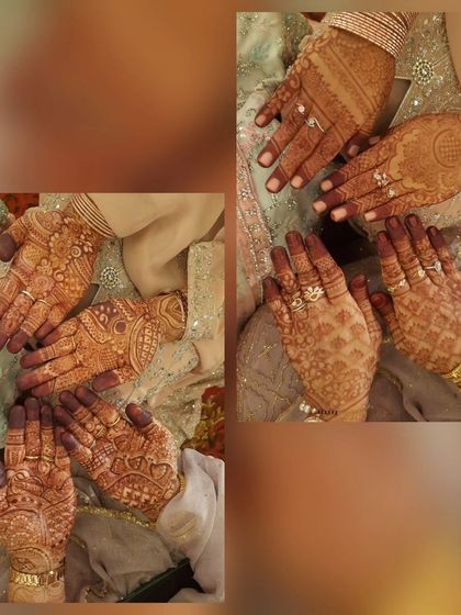 I specialize in coordinated henna designs for bridal parties, creating complementary patterns that enhance the bride's main design. Using 100% organic henna, I craft intricate yet simpler variations of traditional motifs, floral patterns, and geometric shapes for bridesmaids and family members.