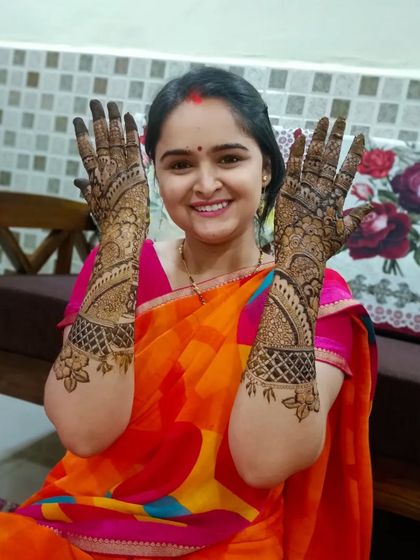 My core passion is creating full, elaborate bridal mehndi that extends from the fingertips to the elbows. I use a mix of fine lines, bold patterns, and detailed shading to create designs that are dense, beautiful, and photograph perfectly. Each design is a unique piece of art for your special day.