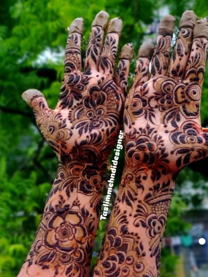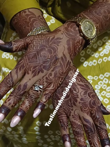 If you're looking for something contemporary, I also create bold Dubai-style mehndi. These designs are known for their prominent, often floral or vine-like patterns with a lot of negative space, creating a striking and modern look. They are perfect for making a statement.