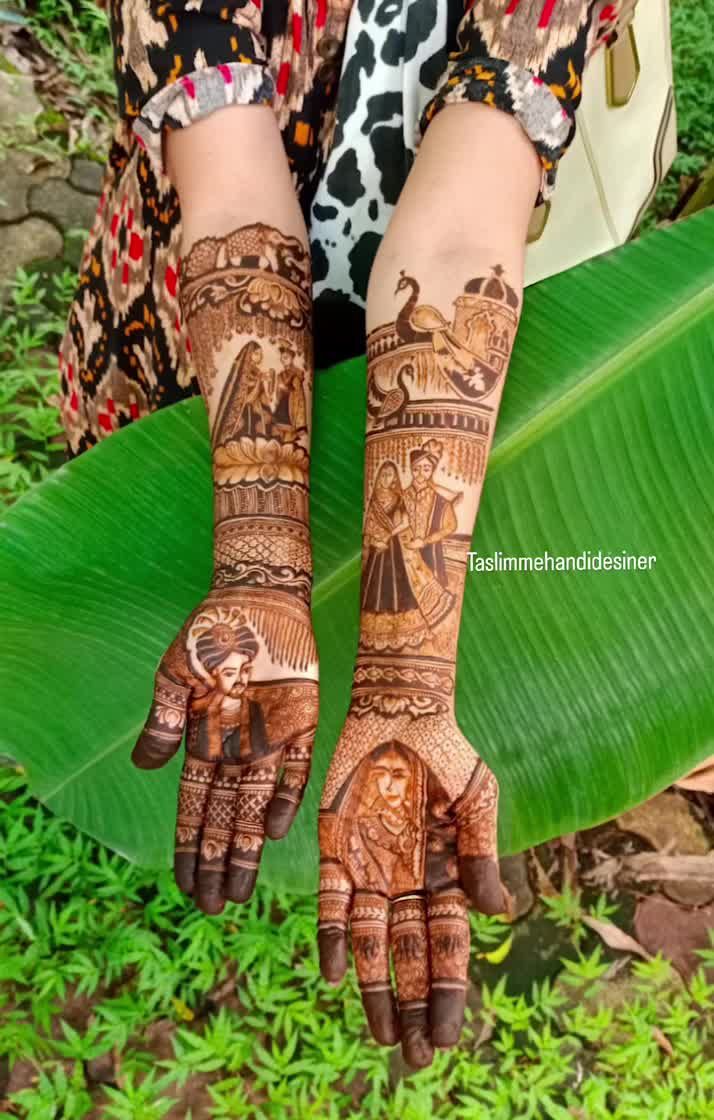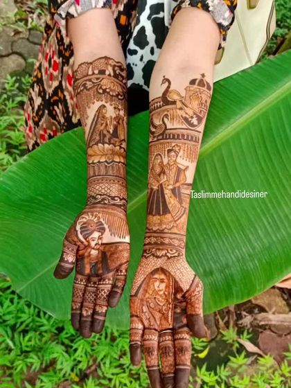 Your love story is unique, and your mehndi can be too. I specialize in creating personalized designs that feature portraits of the bride and groom, special dates, names, or even scenes from your journey together. This is where we turn your skin into a canvas for your story.