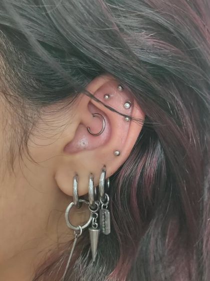 We do all types of body piercings with single-use needles, titanium jewelry, and personal consults—no piercing guns, full safety, and ear curation planned for your anatomy.