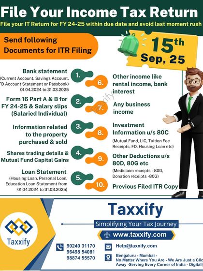 - Form Selection: Preparation and filing of ITR-1 (Sahaj) for individuals with income up to 50 Lakhs.