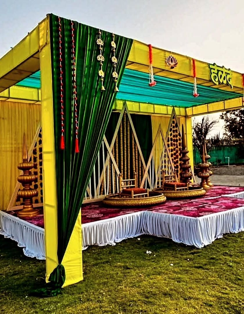 I create vibrant and traditional setups for Haldi and Mehndi ceremonies. I use colorful drapes, marigold flower arrangements, and unique props like decorated umbrellas and seating to make these pre-wedding events joyful and picture-perfect.