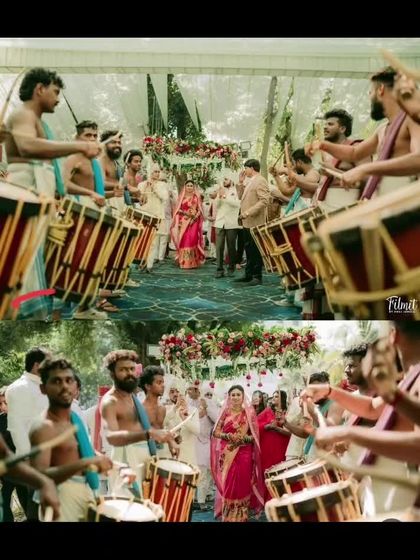 We bring the authentic, soul-stirring sound of Chenda Melam to temple festivals and cultural processions. Our full troupe, dressed in traditional mundu, creates a powerful and divine atmosphere for large-scale religious events and celebrations.