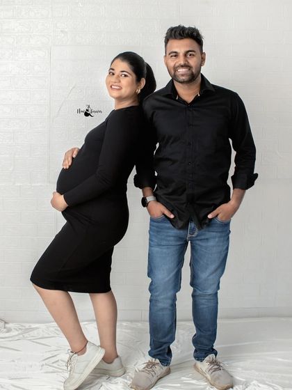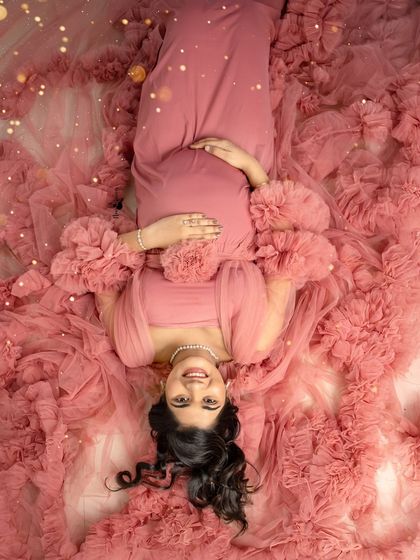 Celebrate your pregnancy with a touch of glamour in my Navi Mumbai studio. I provide a variety of elegant and dramatic gowns, including flowing and "flying" styles, set against beautiful backdrops like our golden swing or classic textures to create stunning, magazine-worthy portraits.