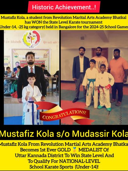 Alhamdulillah, started Revolution Martial Arts in Bhatkal with one crazy dream - make champions, inside and outside the dojo. Now, seeing kids like Mustafiz Kola smash records, qualifying for national karate, that’s something, I tell you. But medals aren’t everything. We train, eat cake, swim, fix health stuff like flat feet, laugh, cry - all in it together. My students grow strong, confident, disciplined. I’m just grateful to be part of their journey.